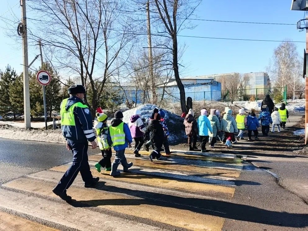 Под руководством сотрудника Госавтоинспекции дети прошли по пешеходным переходам, отрабатывая полученные знания на практике.