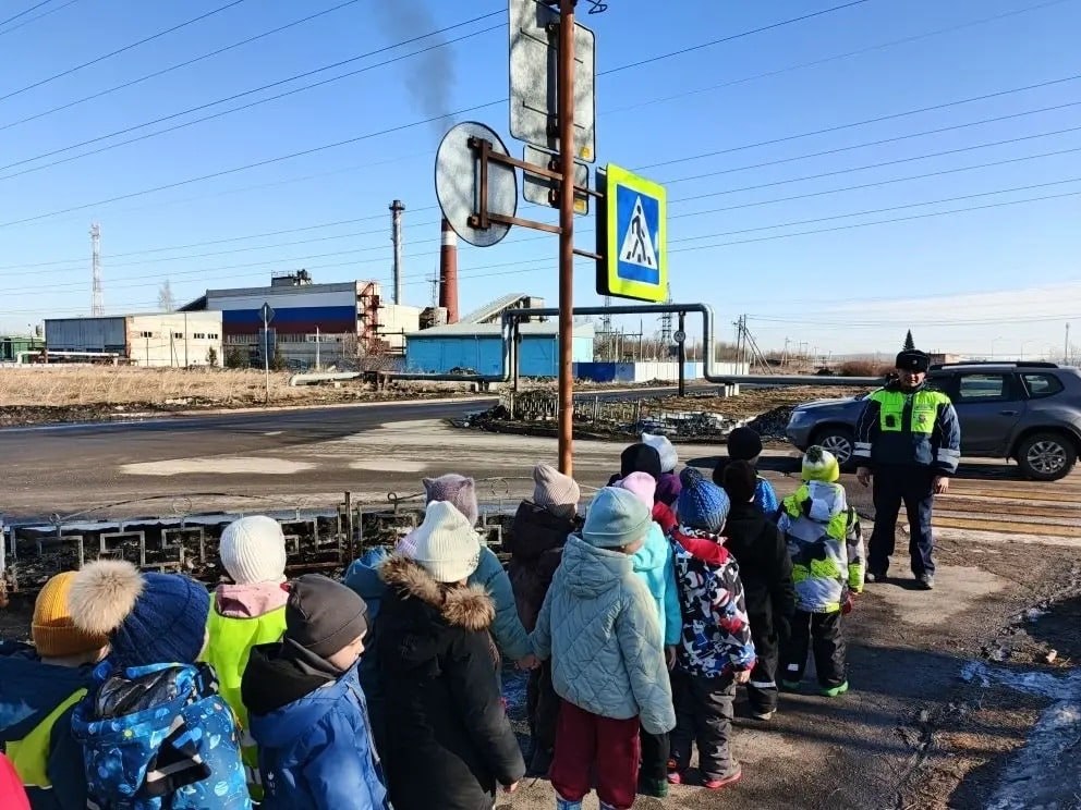Сотрудники Госавтоинспекции Ленинска-Кузнецкого провели пешеходную экскурсию для воспитанников детского сада №35