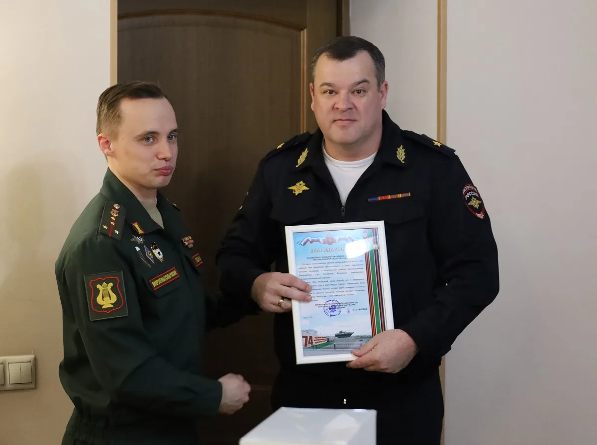 Генерал-майор полиции Виктор Вологин через представителя 74-й отдельной гвардейской мотострелковой бригады от лица кузбасских полицейских передал слова поддержки бойцам, находящимся в зоне СВО.