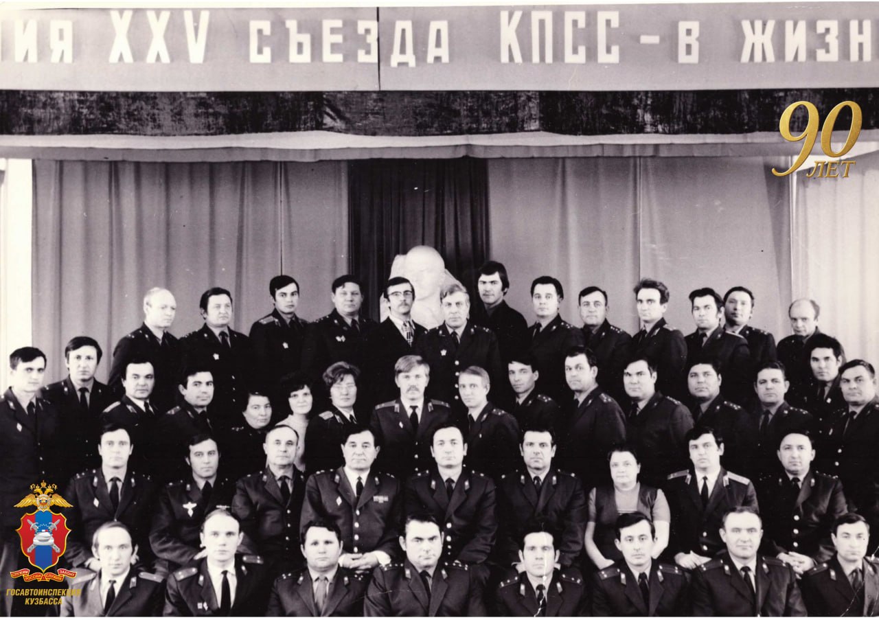 На групповом фото – руководители и сотрудники аппарата отдела ГАИ УВД Кемеровского облисполкома и начальники территориальных подразделений Госавтоинспекции.