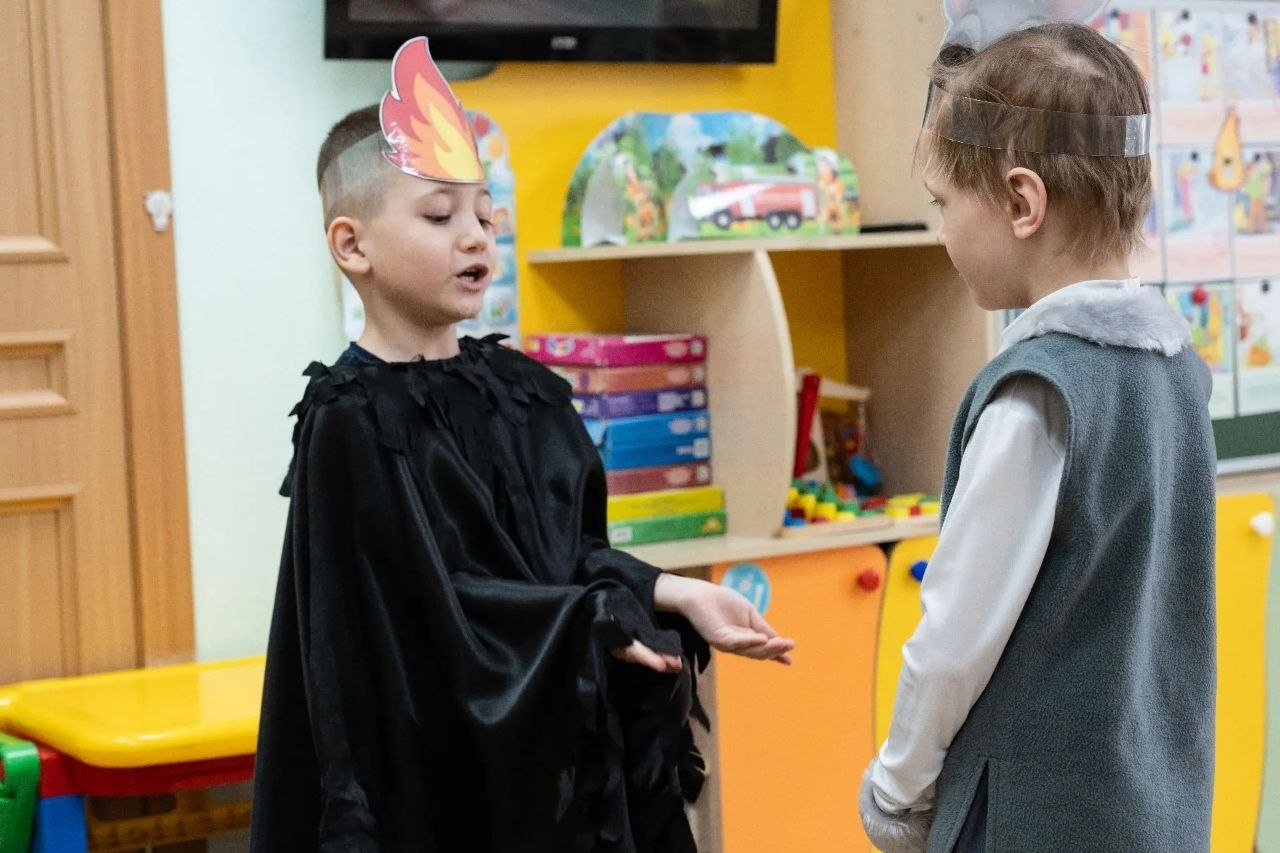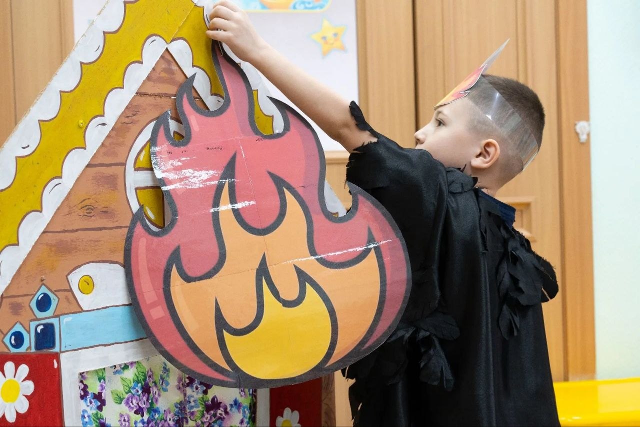 Воспитанники детского сада №20 приняли участие в спектакле о профилактике пожаров. Дети показали сценки, где зайчонок играет со спичками, и объяснили сверстникам, куда звонить при пожаре.