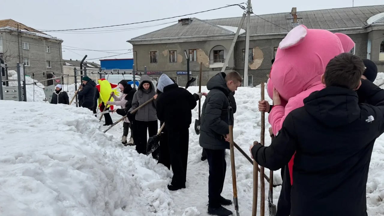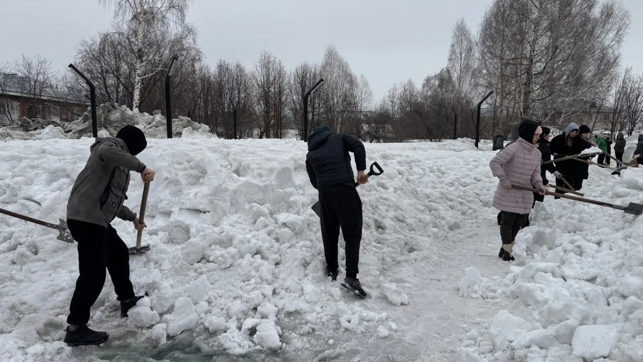 Активисты района, ветераны, работники предприятий и учреждений, ученики школы №18 дружно наводили порядок, рыхлили снег и убирали мусор в сквере, который был обновлён в рамках национального проекта.