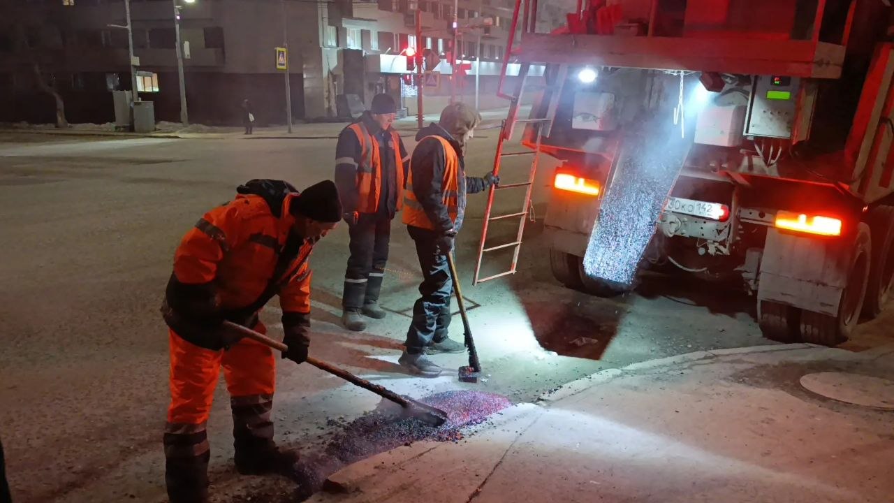 В Кемерове продолжаются работы по ямочному ремонту дорог с использованием литой асфальтобетонной смеси