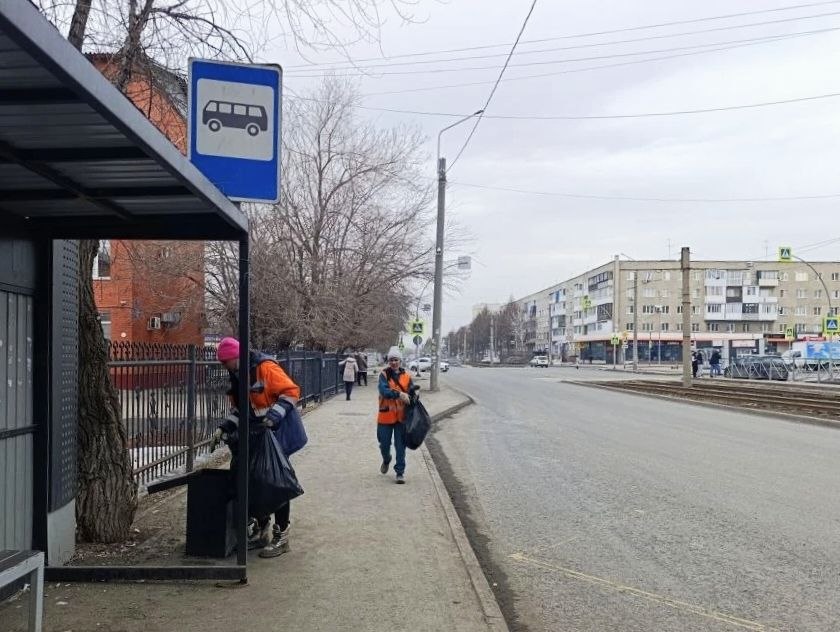 Транспортники наводили порядок на остановках и трамвайных путях, отмыли 14 остановочных павильонов на ул. Сибиряков-Гвардейцев и 6 трамвайных остановок в Заводском районе.