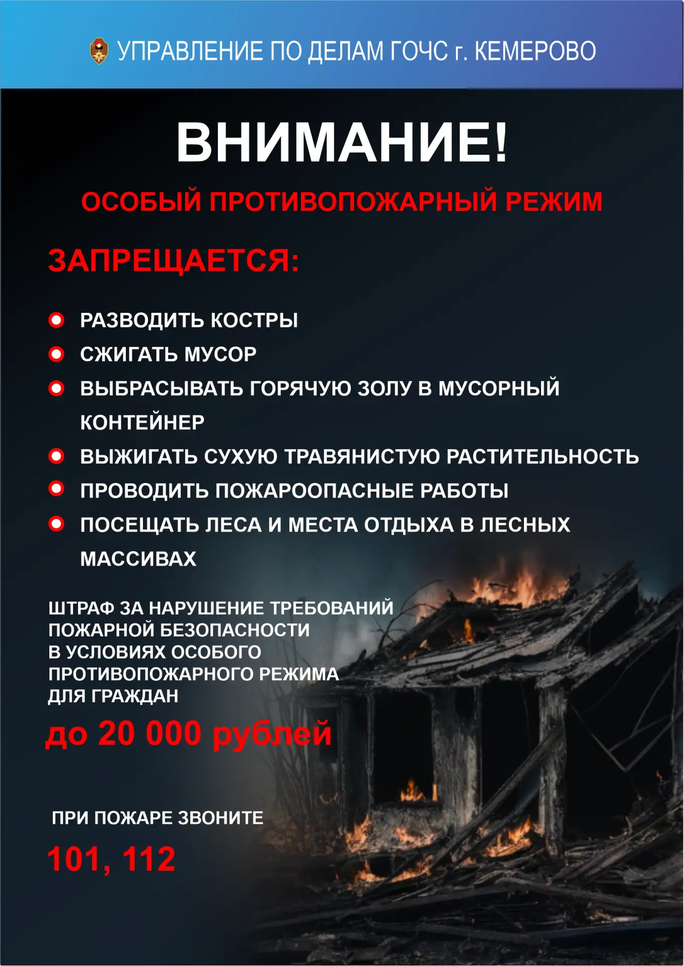 О возгорании городских ландшафтов, большегрузных контейнеров незамедлительно сообщите по телефону единой диспетчерской службы города – 01 (для абонентов сотовой связи -112) звонок бесплатный.