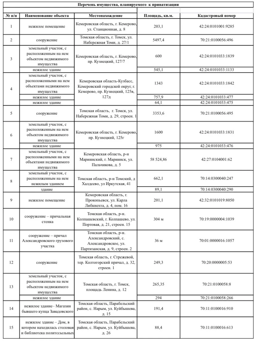 МТУ Росимущества в Кемеровской области - Кузбассе и Томской области приглашает потенциальных покупателей на мероприятие по ознакомлению с федеральным имуществом, подлежащим продаже.