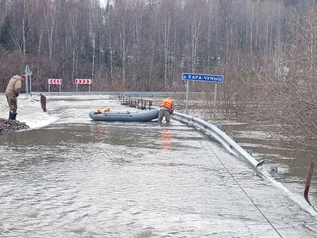 В Прокопьевском округе из-за подтопления временно ограничено движение по мосту через реку Кара-Чумыш