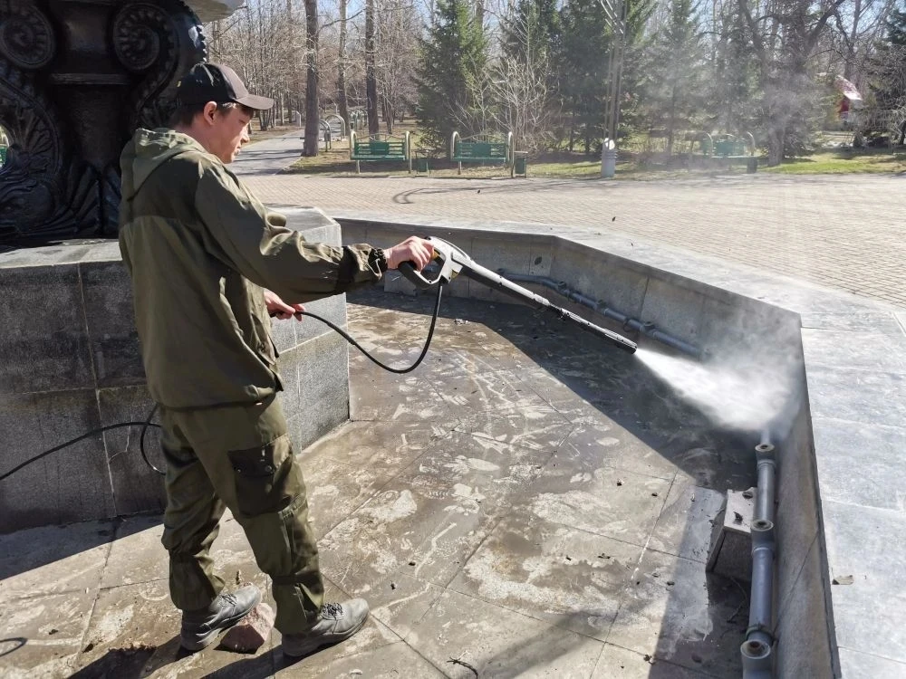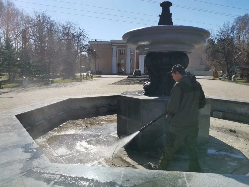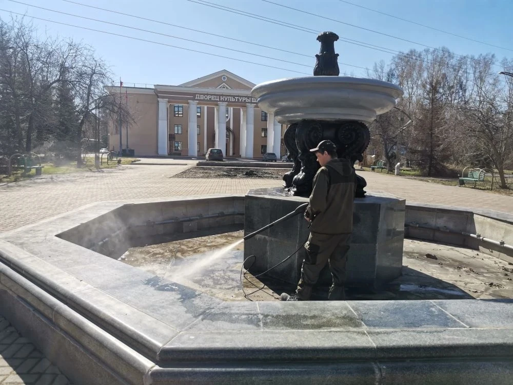 Прямо сейчас приводят в порядок фонтан в сквере около ДК шахтёров.