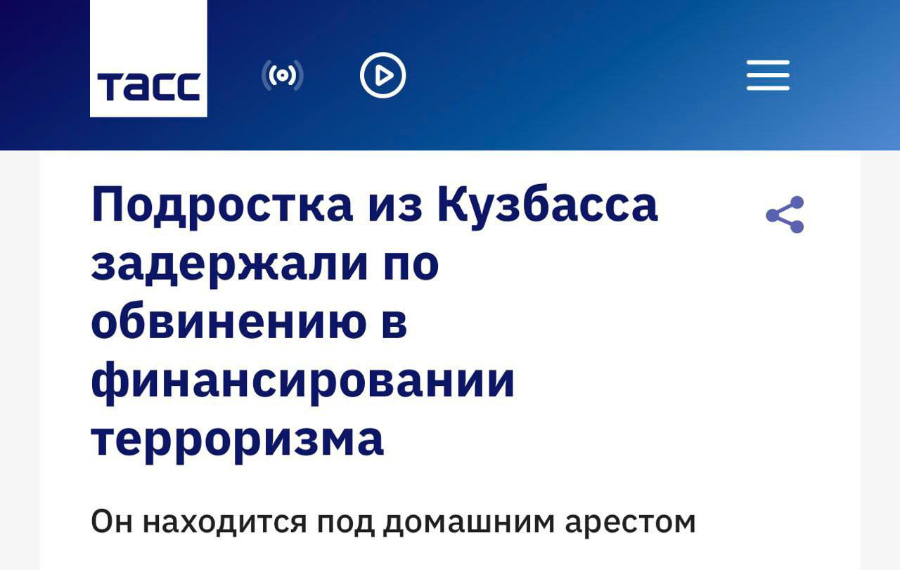 Семнадцатилетнего подростка из Кузбасса арестовали за то, что он ставил платные реакции на посты одной из террористических организаций.