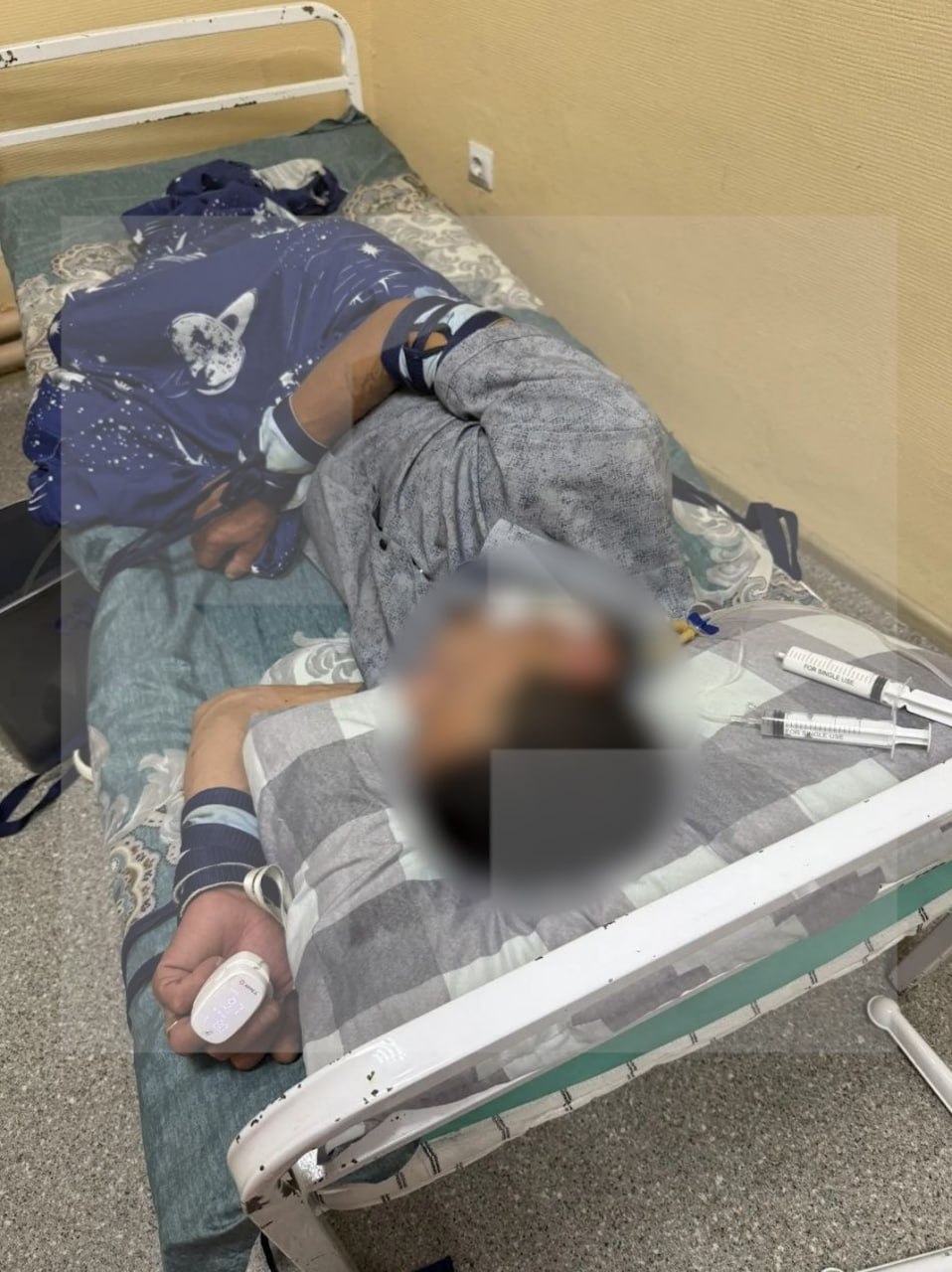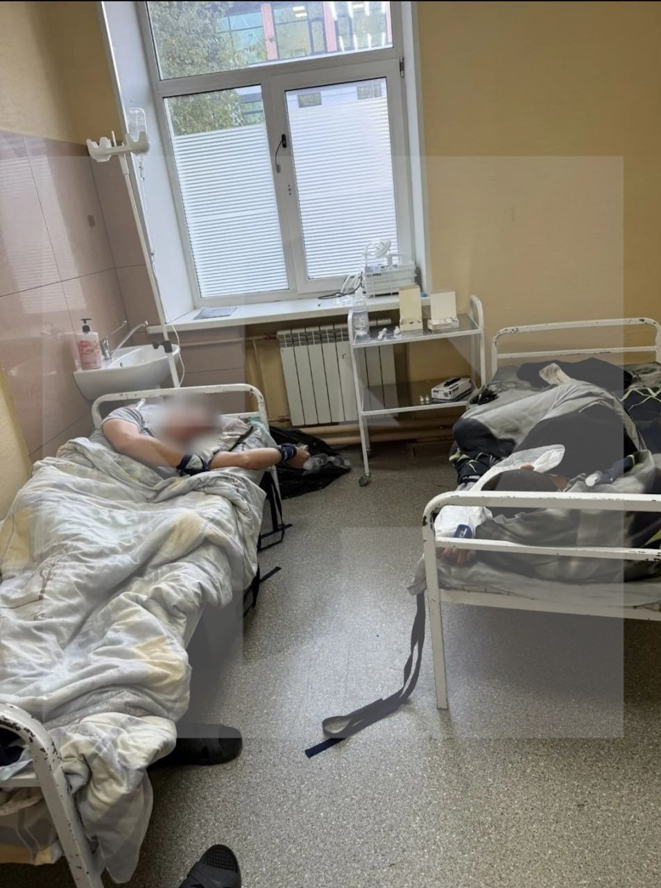 На фото можно увидеть неподходящее для содержания пациентов состояние палат в клинике "Свобода". Обшарпанные стены, старые железные кровати, грязные комнаты с разбросанными препаратами.