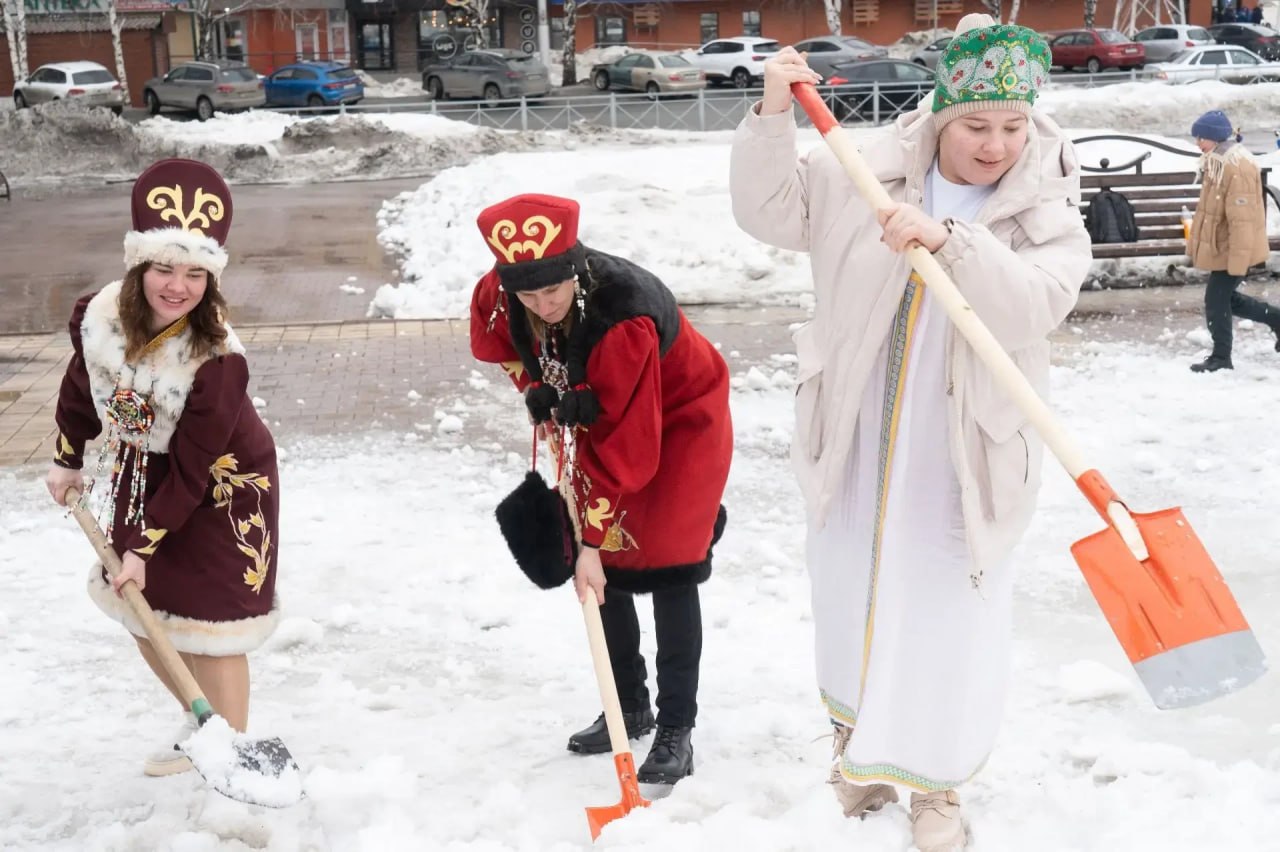 Люди вышли на уборку, объединенные общей целью – преобразить свой город. Многие участники субботника были одеты в национальные костюмы народов, проживающих в Кемерове.