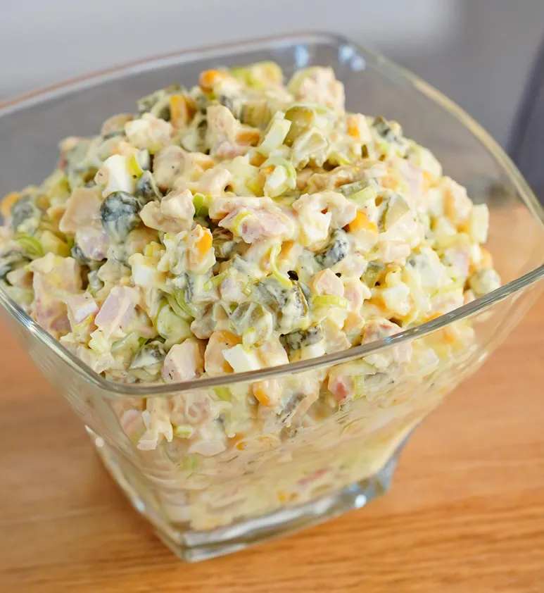 Салат из лука порея, яиц и ветчины