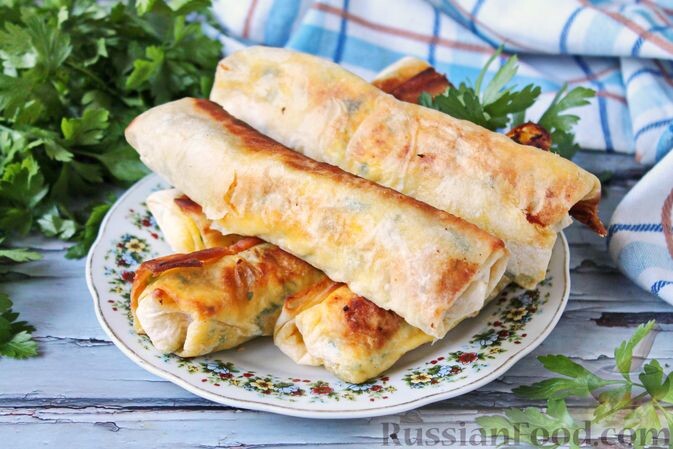 - Ингредиенты: лаваш, сосиски, яйца, твердый сыр, плавленый сыр, майонез, зелень петрушки, растительное масло.