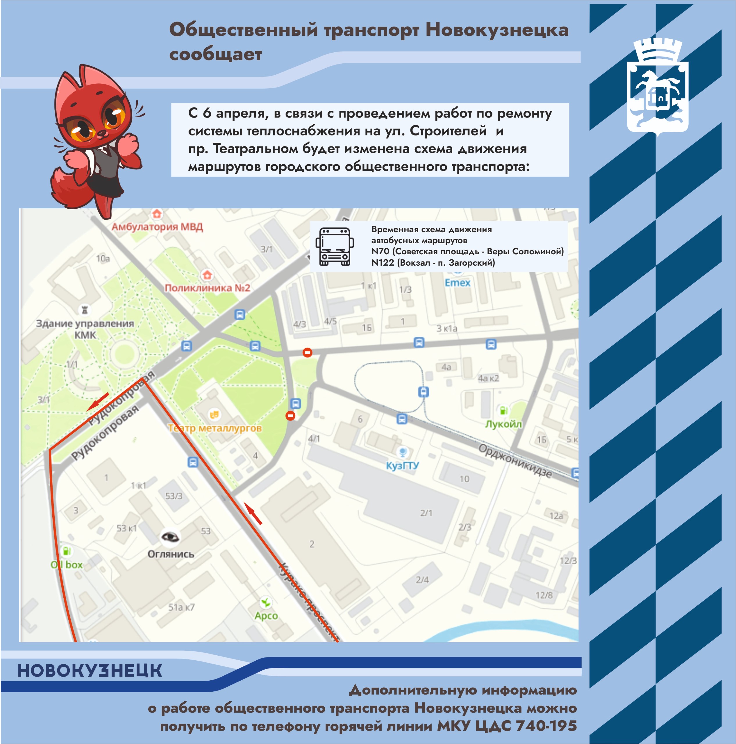 Несколько маршрутов городского общественного транспорта поменяют схему движения на время проведения ремонта системы теплоснабжения на проспекте Строителей