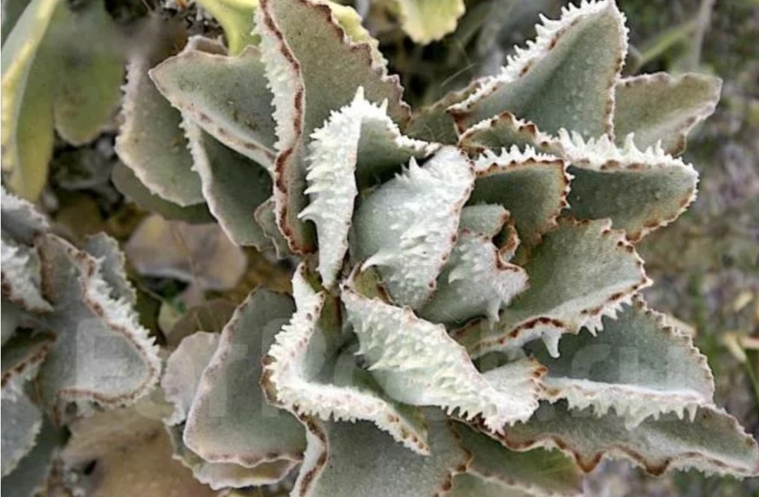 - Каланхоэ Бехарское: отличается бархатистыми листьями с шипами на обратной стороне, что придаёт ему особую изюминку.