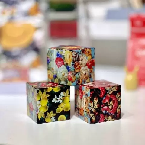 Кубик Рубика, ставший символом множества поколений, получил неожиданное преображение благодаря мастерству Жостовской фабрики. С одной стороны, это привычный нам предмет, а с другой — совершенно новое восприятие, основанное на удивительных деталях росписи.