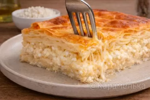 После выпекания дайте пирогу немного остыть, чтобы сыр внутри стал тягучим, а слои оставались мягкими. Подавайте теплым с чашкой чая или кефира, чтобы насладиться его незабываемым вкусом.