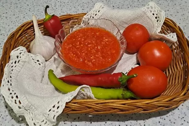 Ингредиенты — хрен, помидоры, чеснок, острый красный перец, сладкий перец, уксус, сахар и соль. Весь набор собирается так, чтобы каждый компонент сохранял свой характер, а общий баланс оставался однородным и знакомым. Базовые пропорции подсказывают, как «запускать» мясорубку без лишних шагов, чтобы масса вышла нужной консистенции, не расплываясь и не оставляя лишних жилок.