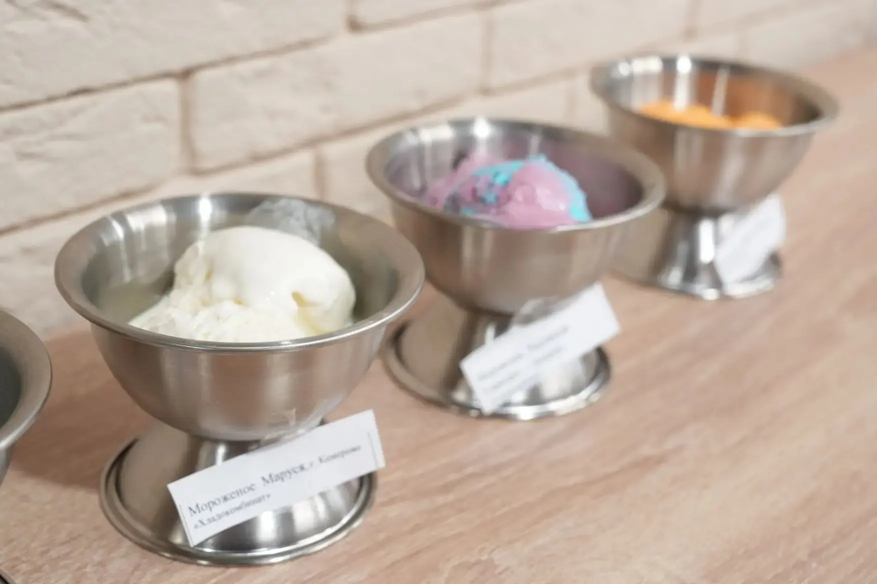На дегустации детям предлагали как традиционные сорта мороженого - шоколадное, ванильное, эскимо, пломбир на сливках, так и изысканные - бананово-клубничное, тутти-фрутти, с начинками персика, малины и манго.
