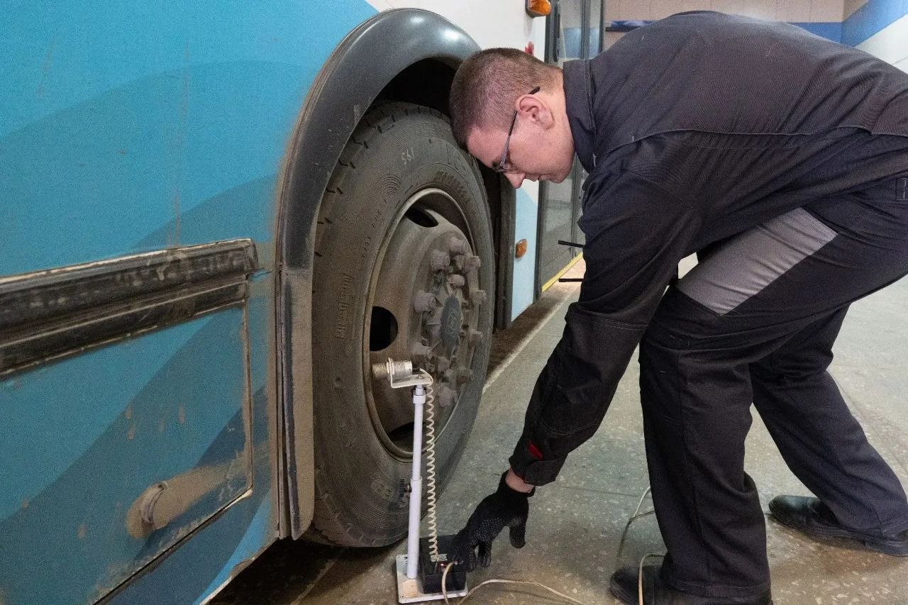 За день здесь проходят техосмотр до 13 машин, специалисты проверяют исправность всех систем и элементов транспортного средства. Одним из ключевых моментов в правилах техосмотра автобусов является обязательное присутствие сотрудника ГИБДД.