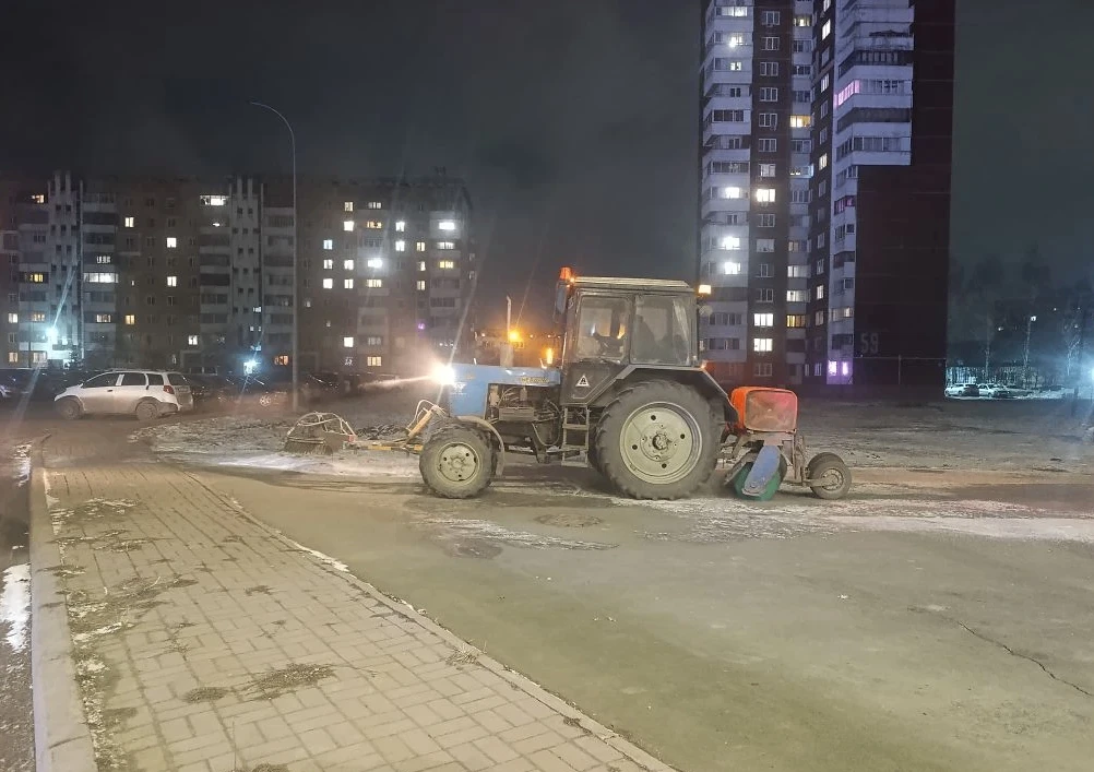 За сутки обработали просп. Московский, просп. Октябрьский, просп. Ленина, просп. Химиков, ул. Волгоградская, ул. Сибиряков-Гвардейцев, ул. Ракитянского, просп. Шахтёров, п. Бутовка, ул. Рутгерса, ул. Серебряный бор, 2-й пер., Авроры, просп. Кузбасский, ул. Институтская, ул. Цимлянская, бульвар имени академика Леонида Барбараша, ул. Терешковой.