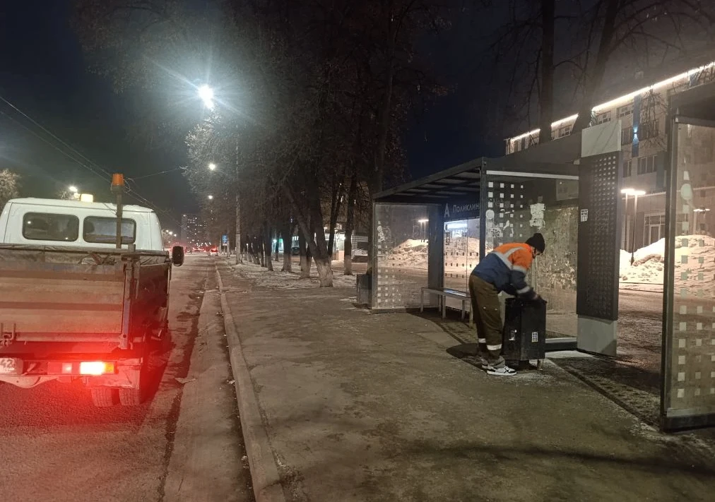 Вчера в уборке города было задействовано 200 дорожных рабочий. Сотрудники предприятий благоустройства убрали мусор на 492 остановочных павильонах, на 356 выполнена очистка от объявлений.