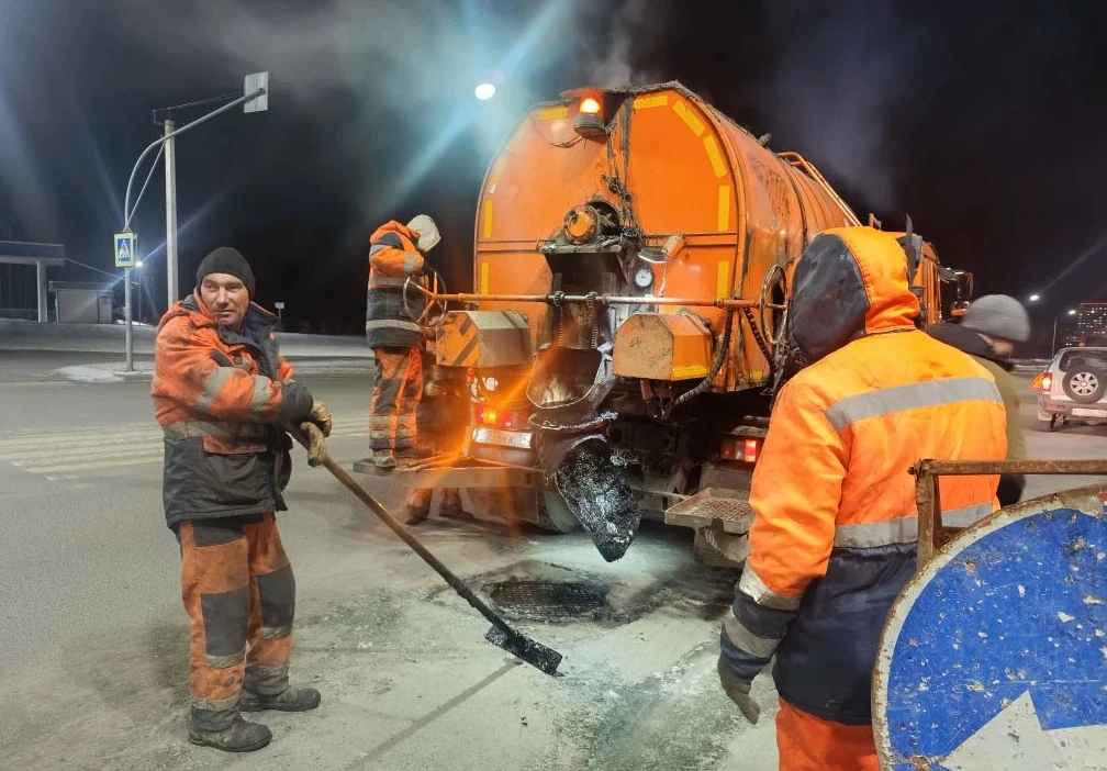 Работы выполнялись в ночное время. Устраняли дорожные дефекты на ул. Рабочая, 58, ул. Красноармейская, ул. Шатурская, 4а, просп. Молодежный, 9г-11б, ул. Казачий тракт.