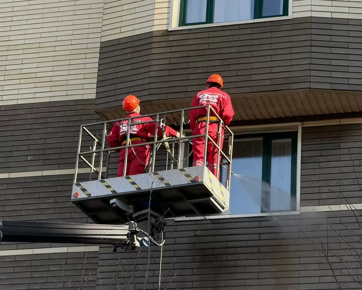 Работы проводятся с использованием автовышек, и все процессы проходят при температуре выше нуля. Это позволяет не только обеспечить качественное выполнение заданий, но и избежать неприятностей, связанных с замерзанием моющих средств.