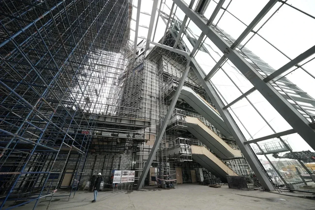 Фасадчики монтируют одну из самых красивых частей здания – остекление атриума. Общая готовность комплекса – 75%. Обращаю внимание подрядчиков и контролирующих ведомств – крайне важно, при сохранении высоких темпов работ, обеспечить их безупречное качество. Комплекс будет лицом Кузбасса на десятилетия вперед, и потому должен соответствовать высочайшим стандартам во всем.