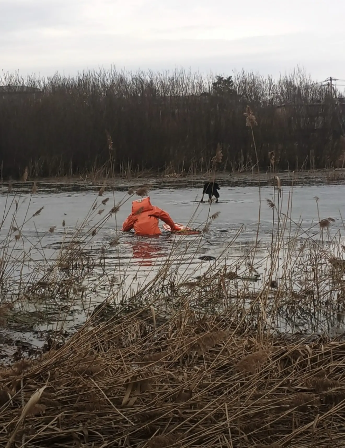 Животное провалилось в трясину и не смогло выбраться самостоятельно. На помощь пришли добровольцы ДПК «Сова». С помощью оборудования и подручных средств они аккуратно вытащили пса.