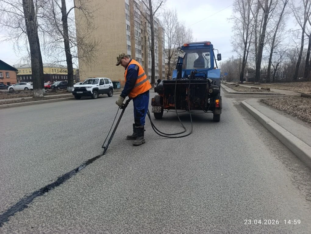 Заливка трещин битумом проведена на ул. Терешковой, ул. Аллейная, ул. Рекордная, ул. Потемкина, ул. Александра Матросова. Сегодня специалисты проводят эту работу на ул. Мариинская, ул. Ишимская.