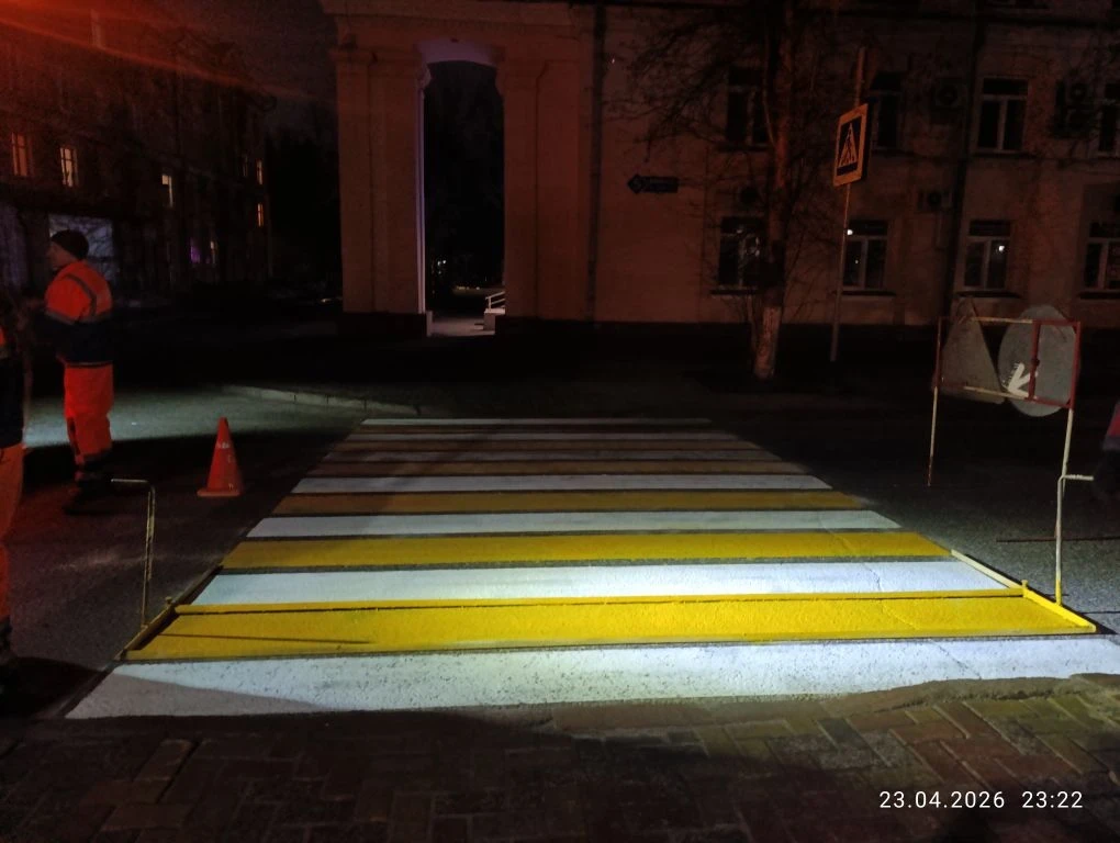Ночью рабочие нанесли дорожную разметку на пр. Советский, ул. Весенняя, ул. Кирова, ул. Орджоникидзе.
