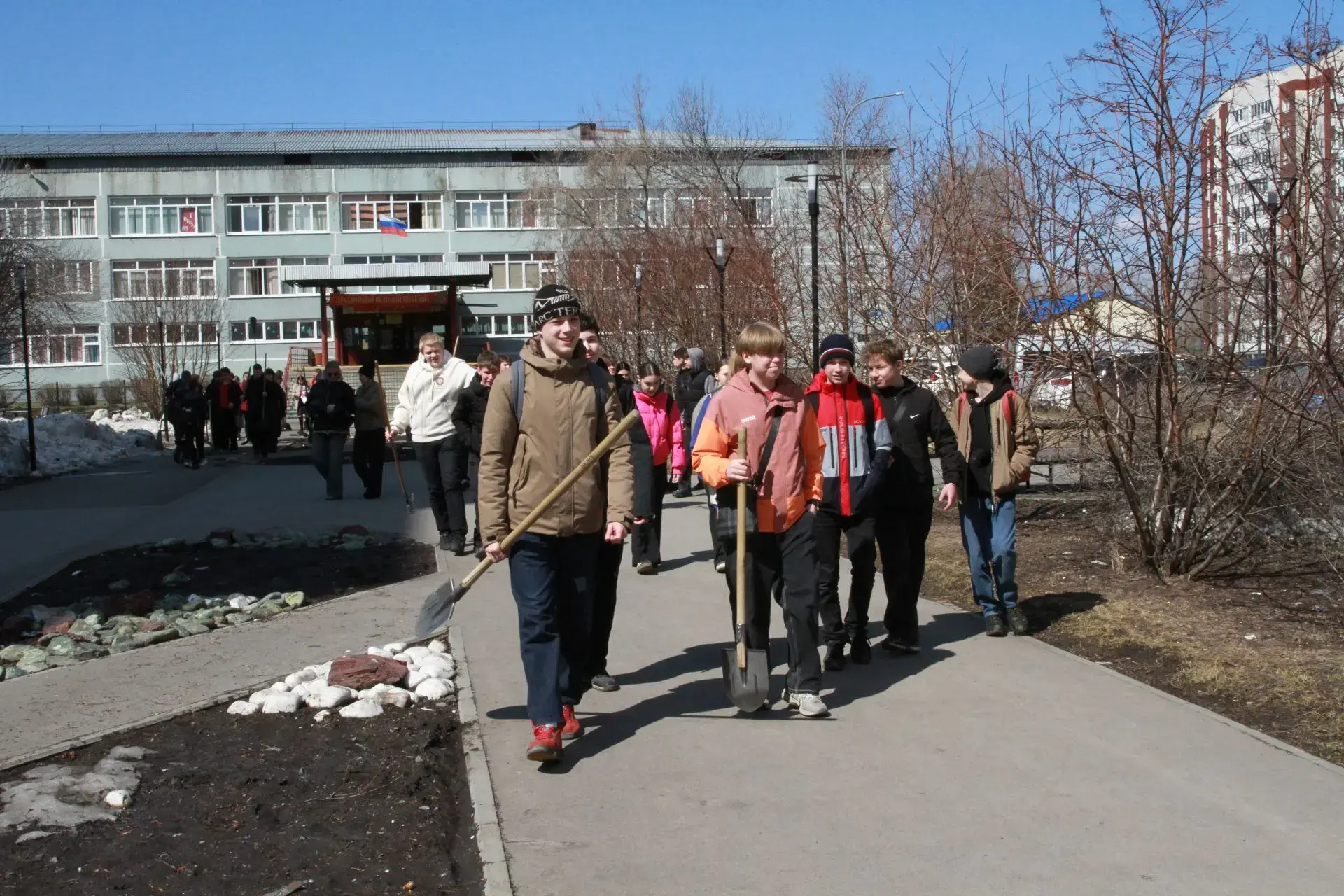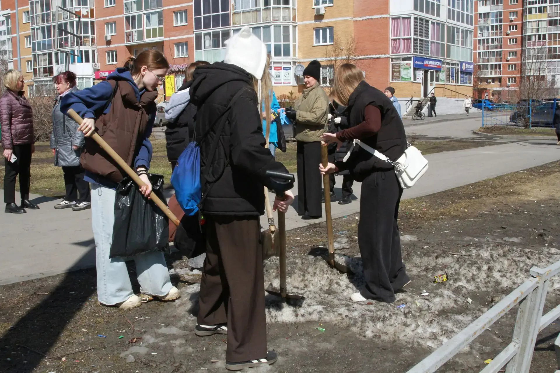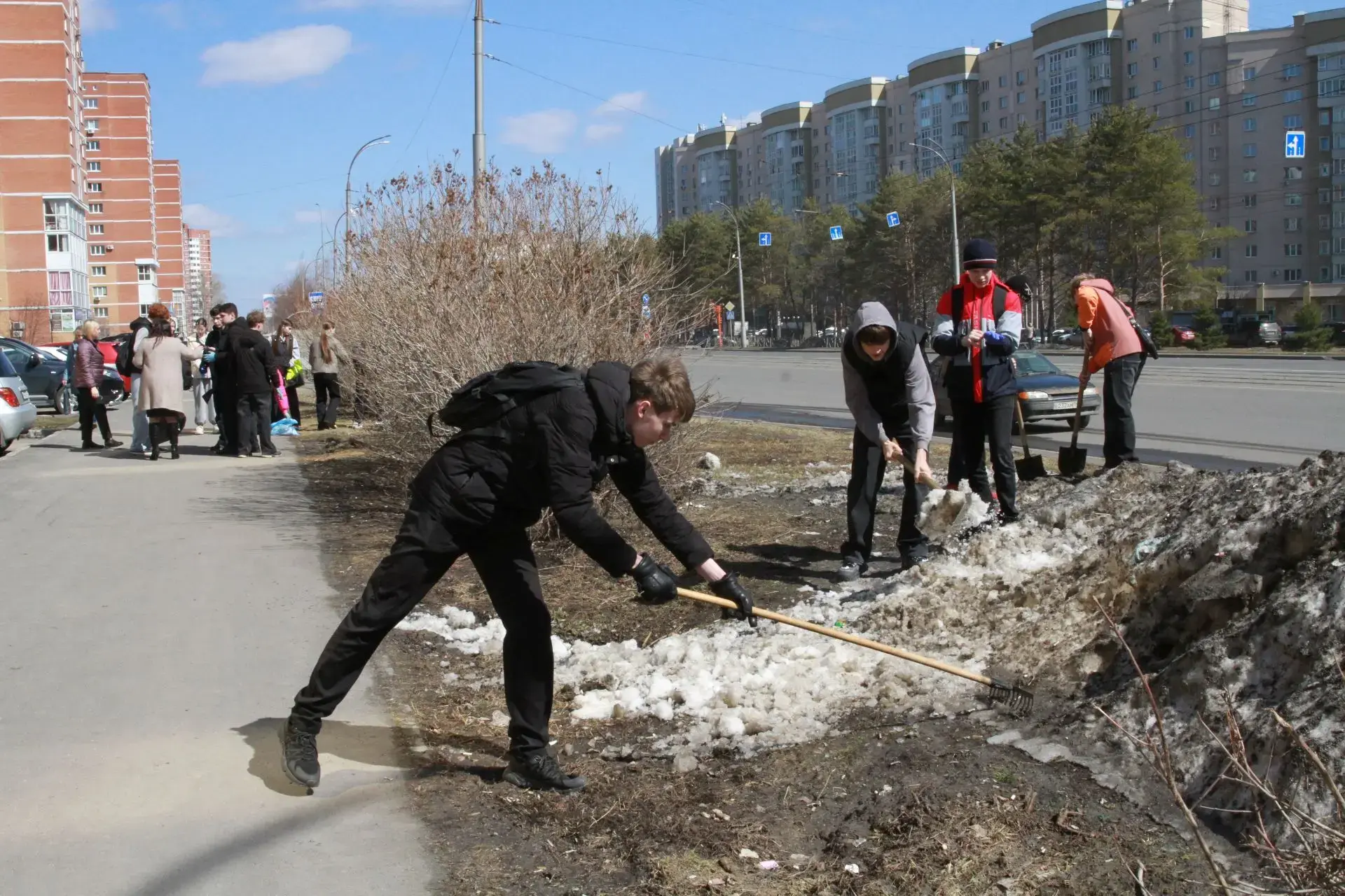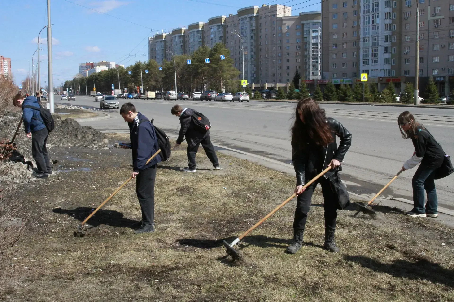 На весеннюю уборку вышли студенты Кемеровского горнотехнического техникума, школьники, активисты ТОС, сотрудники территориального управления, управляющих компаний.