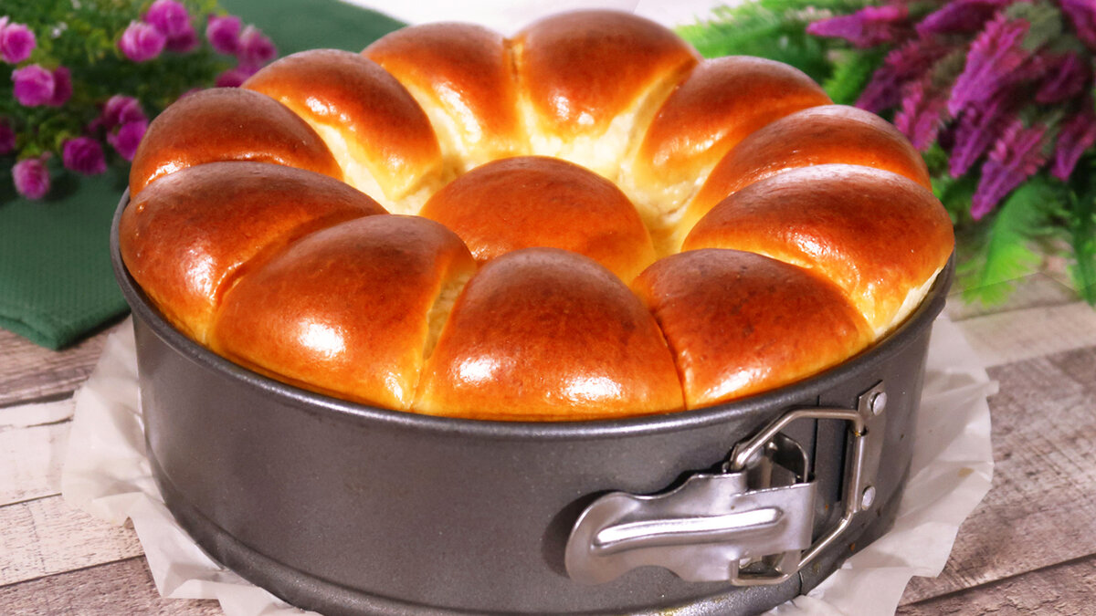 Форма для выпечки диаметром 24 см (подойдет также 26 см) необходимо застелить пергаментом и смазать растительным маслом. Заготовки теста раскатываются и наполняются начинкой. Края хорошо защипываются, а затем все заготовки выкладываются в форму, формируя «цветочные» узоры.