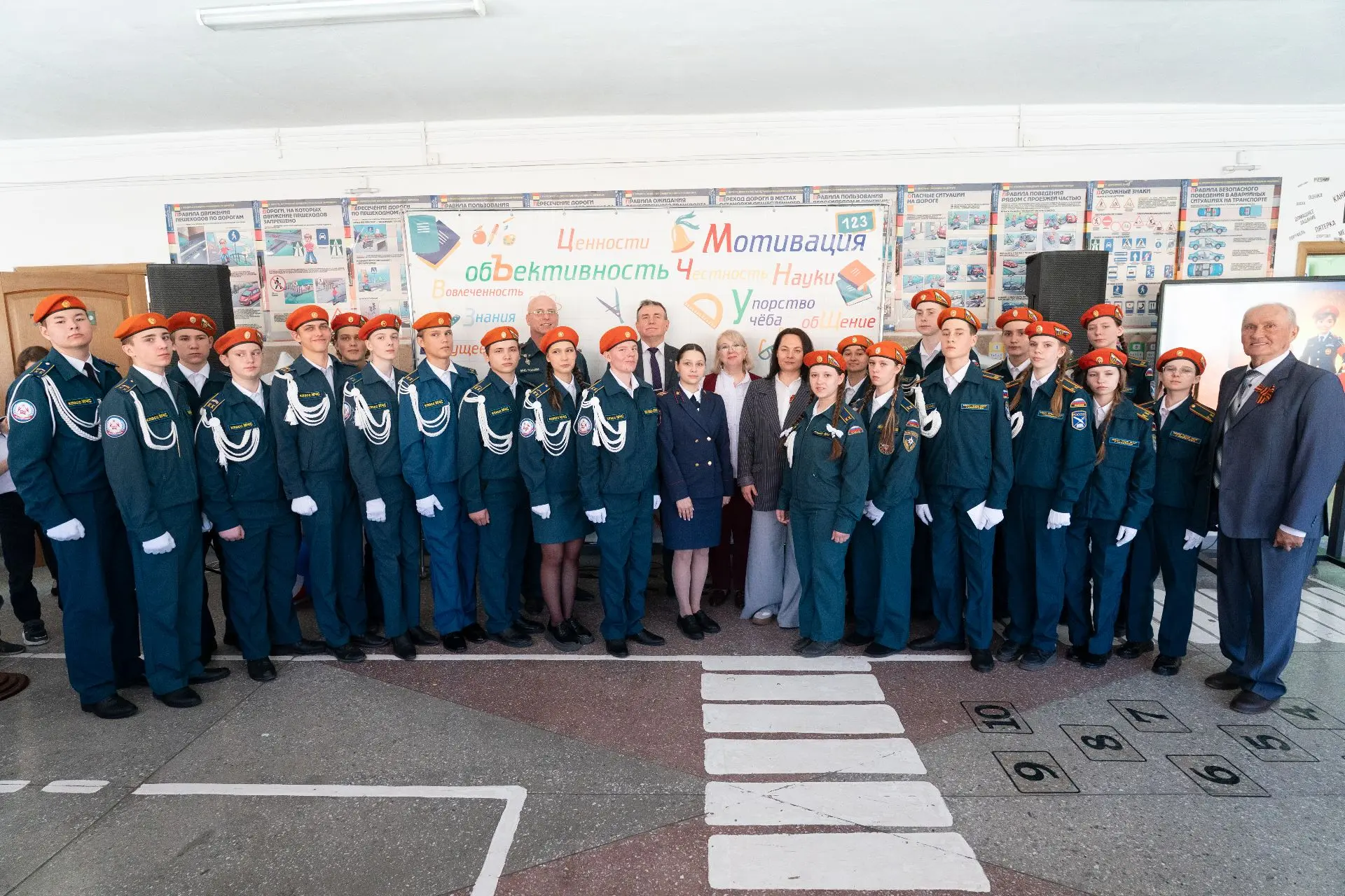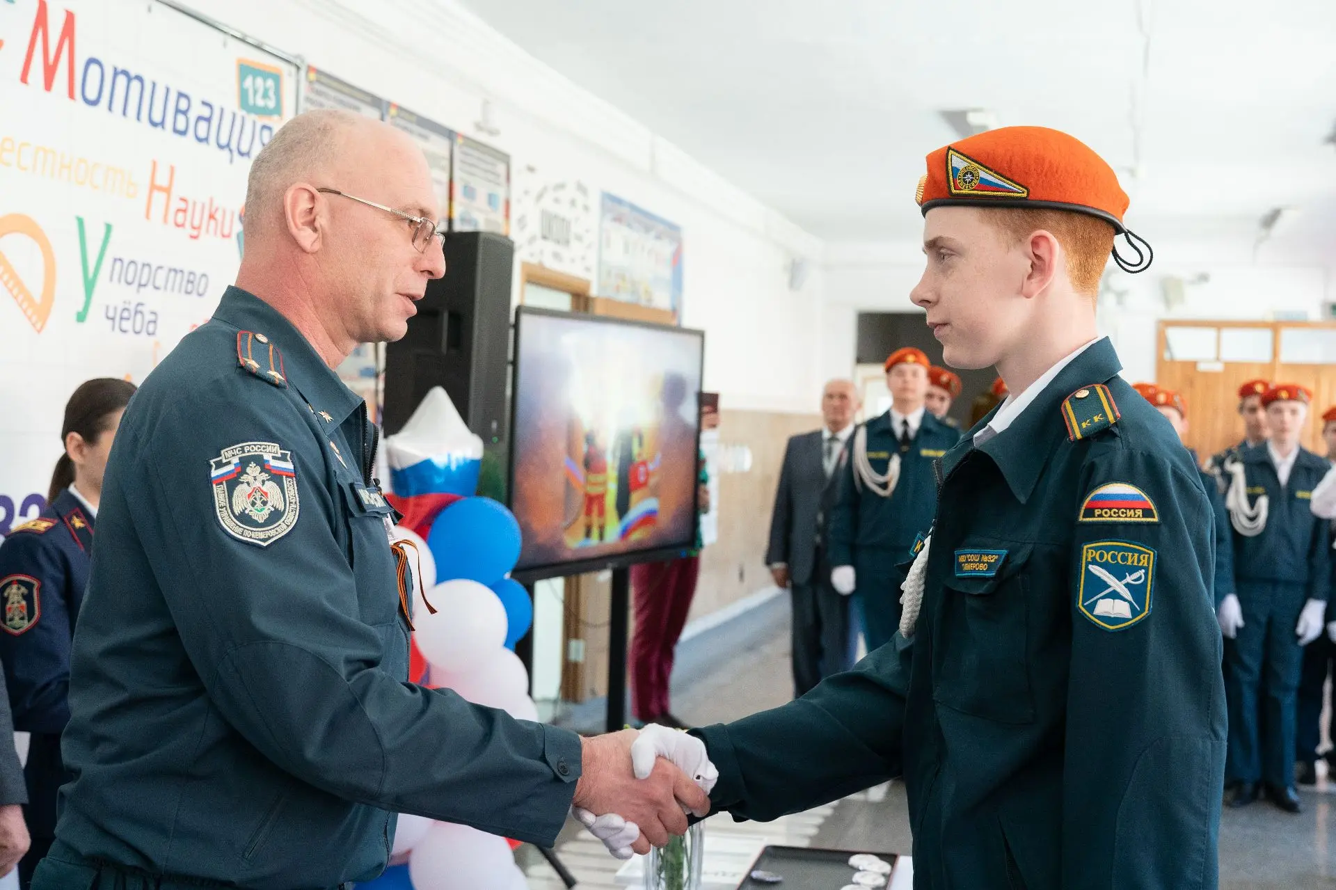 В рамках встречи прошло награждение школьной дружины «Огненный дозор» за победу во Всероссийском конкурсе Дружин юных пожарных-спасателей. Отличившимся кадетам классов МЧС вручили специальные знаки отличия за старания, смелость и преданность делу. А также приняли в ряды юных пожарных кандидатов из 4-х и 7-х классов.