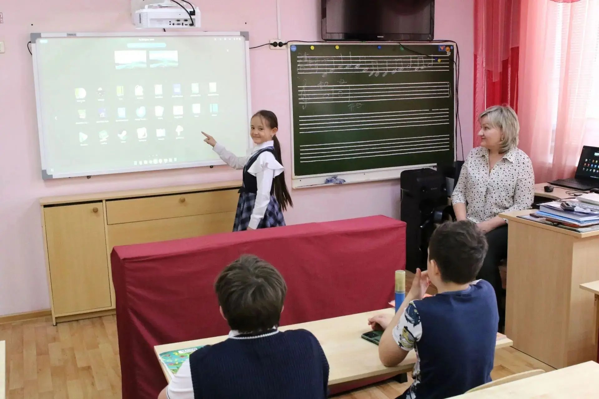 Ранее в школу также были поставлены девять пианино «Соната», изготовленных ООО «Азия Мьюзик Компани» на фабрике в Иркутске, интерактивная доска, ноутбук и проектор.